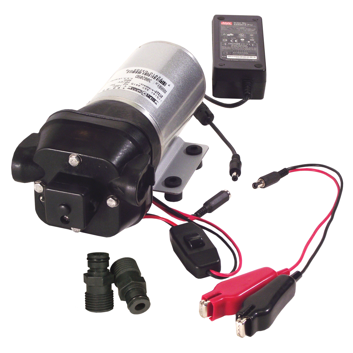 The BURCAM 300209DP non-submersible utility pump is ideal for transferring water in hunting and fishing camps, RVs and more. The pump is small and portable and has a dual voltage 115V AC/12V DC motor. The 12V DC motor can be used with an 115V AC outlet using the included 115V AC to 12 V DC power supply, or with a 12V DC power source such as solar panels or a car battery using the supplied clamps. The switch allows for automatic operation when water is required. For optimal function of the switch, the pump must be higher than the water source. The pump comes with garden hose compatible inlet and outlet adaptors for quick and easy hook up. The capacity is up to 350 US GPH and the maximum head is 40 feet.